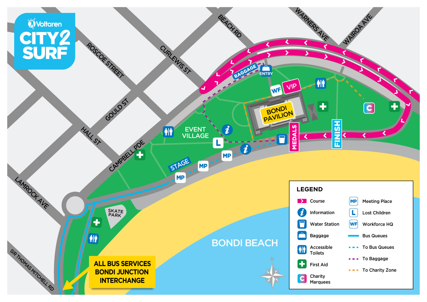 Voltaren City2Surf has one of the most iconic courses in the world. Experience the thrill of starting the 14km event in Australia's largest city in the middle of its bustling CBD before making your way to one of the world's most famous beaches - Bondi Beach.